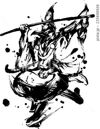 鴉天狗水墨插畫