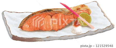 水彩風格,秋天的味道,烤鮭魚配茗荷