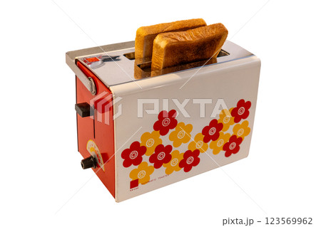 一張用時尚的烤箱烤麵包機烤兩片麵包的照片