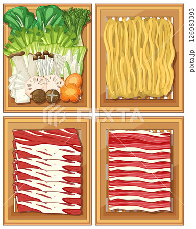 Asian Hot Pot Ingredients Vector Illustration