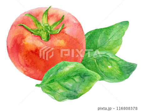 羅勒葉和番茄水彩插圖