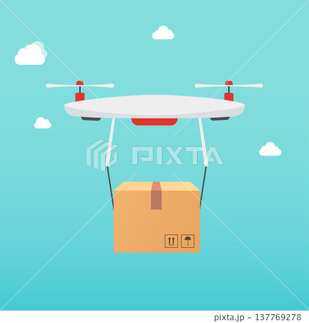 Drone carrying carton box. Delivery concept service. Business set. Flat design modern vector illustration concept.