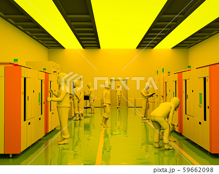 在設有風淋室和無塵室的工廠工作的工人(點名和確認)