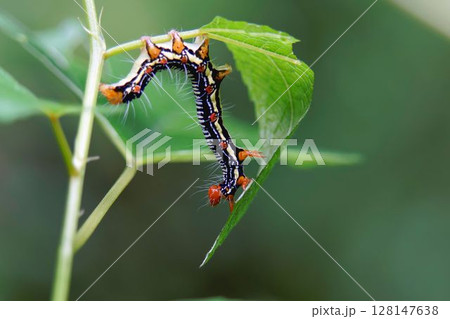 吃Hamayu的葉子的Hamaeumotojoto的幼蟲