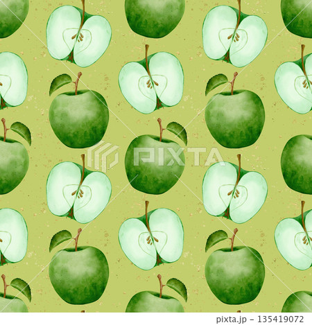 Watercolor Apple Design, Elegant Watercolor Pattern Showcasing Whole And Sliced Apples With Foliage