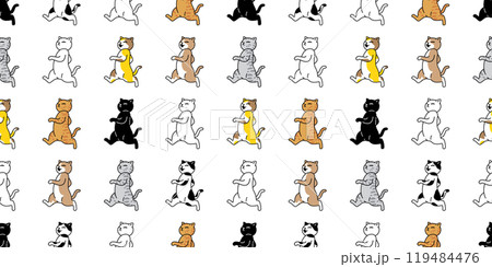 cat seamless pattern kitten walking running calico neko vector cartoon pet doodle gift wrapping paper tile background repeat wallpaper scarf isolated illustration design