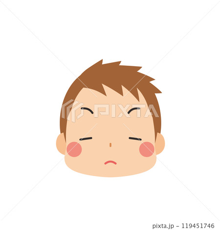 一個可愛的小男孩的表情符號插圖,有一個嚴肅的臉圖標面部表情白色背景向量