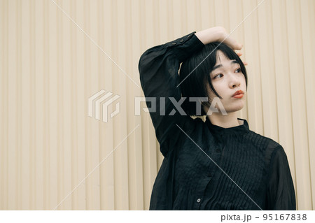 黑髮短髮女人肖像自然美