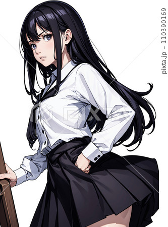 一個穿著制服、表情嚴肅的高中女生的插圖