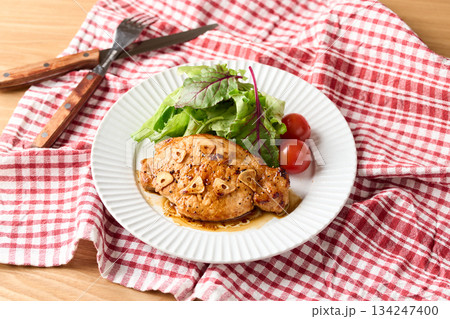 經典西式菜餚,炒豬肉配上色彩繽紛的蔬菜拼盤。無論在家烹飪還是在餐廳用餐,都是絕佳之選。