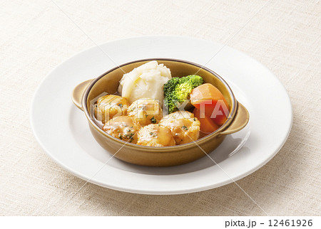 扇貝殼烤扇貝烤溫暖的蔬菜