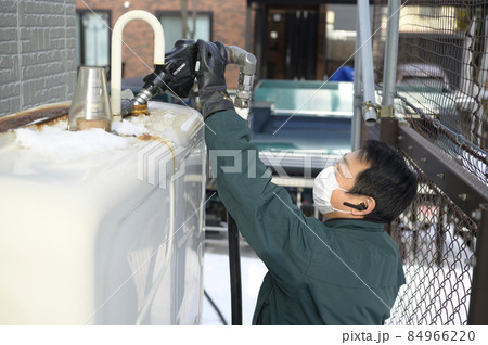 給油爐加油,婦女的雙手,冬天