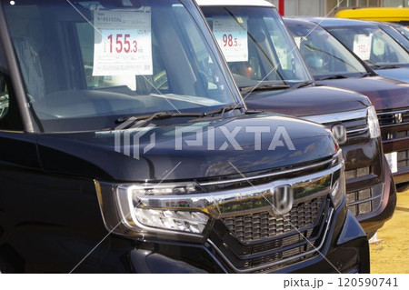 二手車圖像 在本田輕型汽車經銷商處排隊的汽車