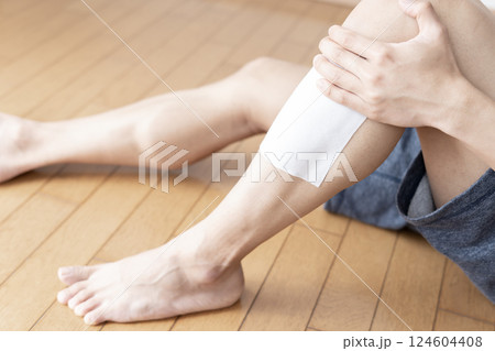 男人在膝蓋上敷藥,膝蓋疼痛,扭傷,關節疼痛,身體部位