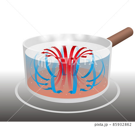 IH炊具和沸騰鍋中熱水對流的說明圖