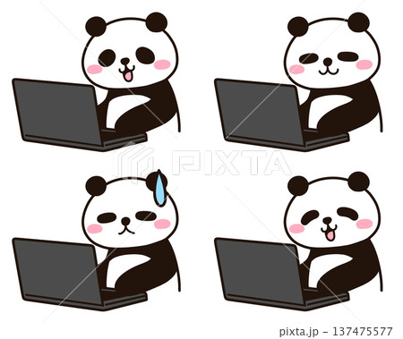 Black White Line Cute Panda Illustration Character Vector Logo Template