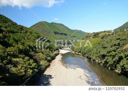 從上富田川町鴨橋附近的熊野古道眺望富田川【和歌山縣富田川町】
