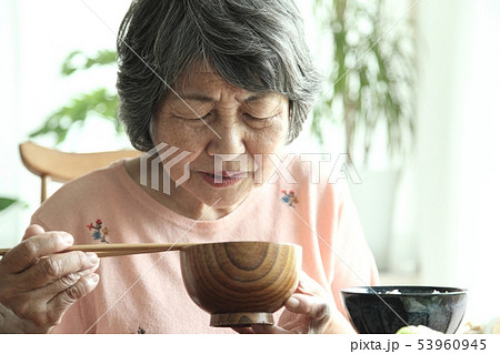 吃日本食物的老婦人的手