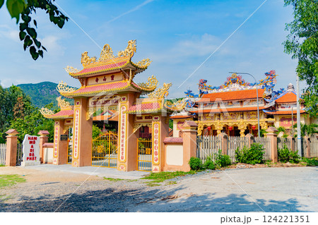 View of the Tu Ton Pagoda Island in Nha Trang. Buddhist temple on an island in the middle of the sea