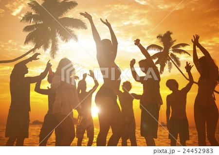 Friends Summer Beach Party Dancing Happiness Concept