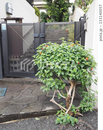 東京某住宅區大門前盛開的馬纓丹