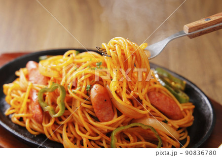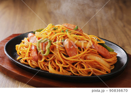 那不勒斯意粉放在鐵盤上