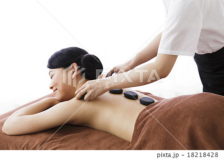 美容美容女性美容微笑熱石護膚年輕女性身體護理