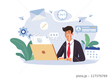 Customer Service Support via Email Illustration concept on white background