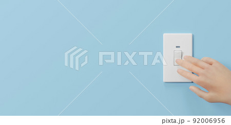 淺藍色牆壁上的開關面板(關閉)/節電、節能和電價上漲的圖像