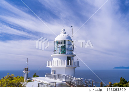 藍天映襯下閃閃發光的出雲日禦碕燈塔