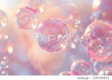 粉紅色背景上的多個白色和粉紅色球體。背景材料。 (景觀)