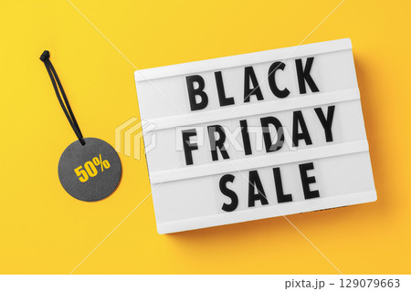 Creative top view flat lay promotion composition with Black friday sale text on lightbox