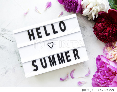 Hello Spring text on lightbox on scattered letters plastic alphabet background