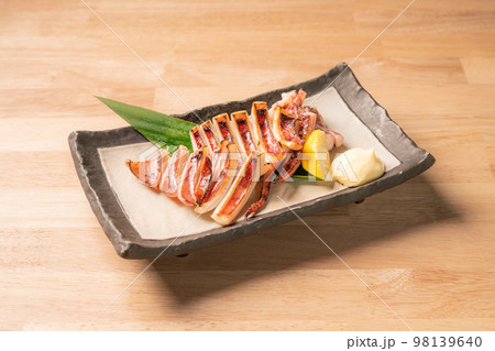 烤日本魷魚。魷魚, 海鮮, 海鮮菜餚