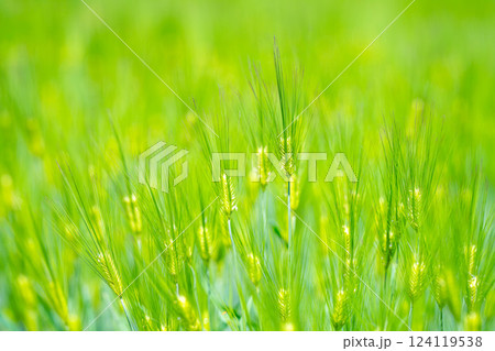 【新鮮綠色素材】綠色的麥田和藍天【長野縣】