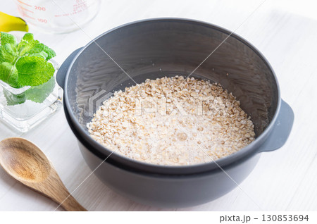 煮飯前將水和燕麥片放入耐熱容器中