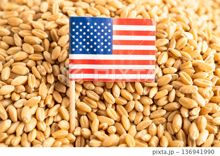 US America flag with Wheat and grains ears agricultural, organic farm