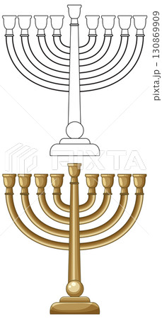 Gold Menorah Vector Illustration with Outline and Colored Versions