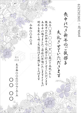 冬季問候線畫,帶有優雅的花卉圖案、淡紫色的強調色