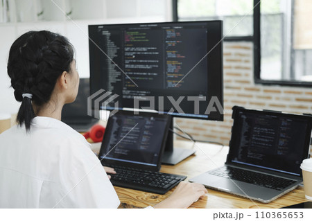 Asian man working code program developer computer