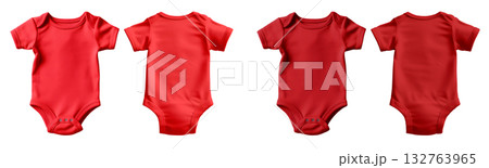 2 Set of dark light red maroon, infant baby Bodysuit romper playsuit jumpsuit creepers, front back view on transparent background cutout, PNG file. Mockup template