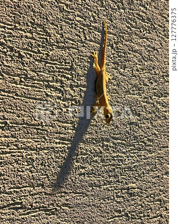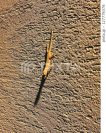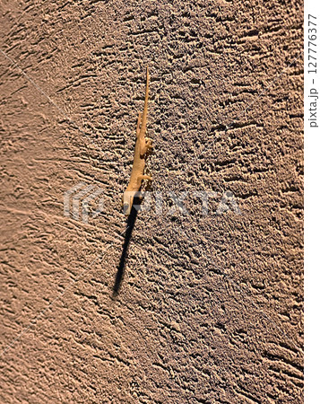 在晚上拍攝戶外牆壁上正在覓食的壁虎