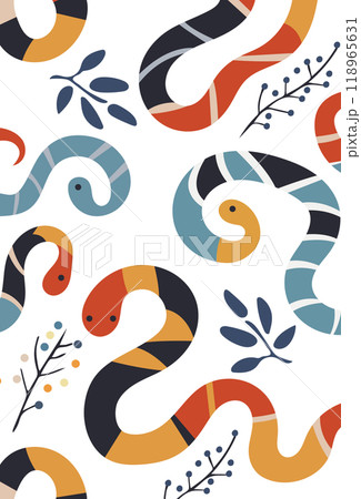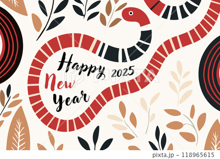 微笑蛇插畫新年賀卡素材2025圓點圖案