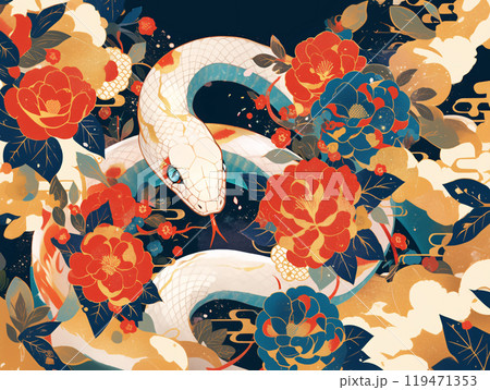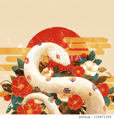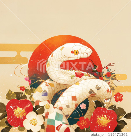 微笑蛇插畫新年賀卡素材2025圓點圖案