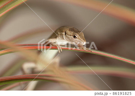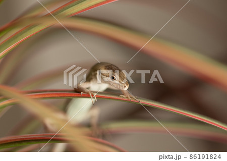 曬日光浴在葉子/曬日光浴的Lizard_1的蜥蜴