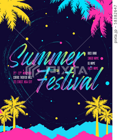 Electronic Music Covers for Summer Night Party or Club Party Flyer. Colorful Waves Gradient Background. Template for DJ Poster, Web Banner, Pop-Up.
