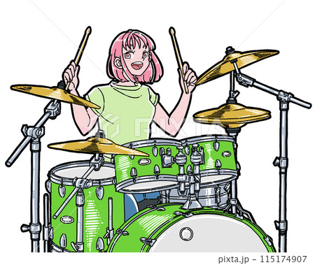 一個紅色樂器鼓組的插圖。背景透明插圖