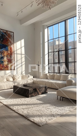 Modern living room design urban apartment interior photography bright environment cozy viewpoint minimalist concept for seo impact