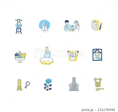 葬禮和佛教事務圖標矢量圖解材料/葬禮/墳墓/生命的終結
