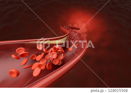 血塊或腫瘤黏附在血管壁上的圖像 CG 插圖顯示疾病風險